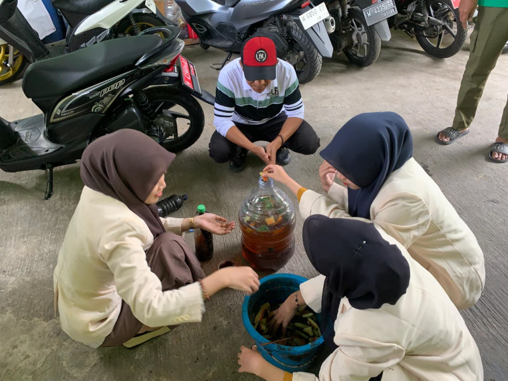 Kegiatan tersebut difokuskan pada praktik langsung pembuatan eco enzim yang memanfaatkan limbah organik berupa kulit buah. Melalui kegiatan ini, mahasiswa memperoleh pemahaman sekaligus pengalaman nyata terkait pengelolaan sampah organik yang ramah lingkungan dan bernilai guna.